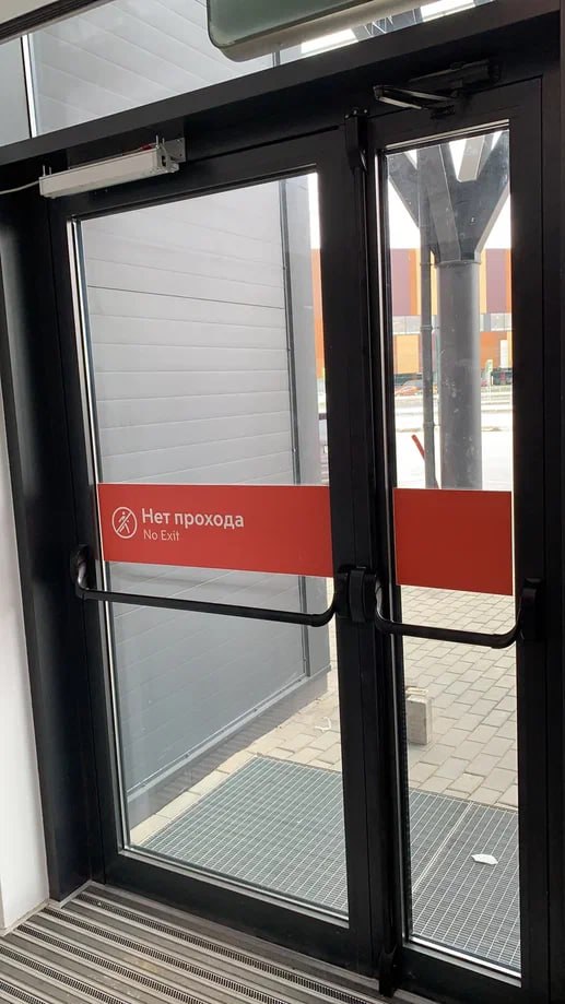 Установка рычажных приводов для эвакуационных дверей обеспечивают их автоматическое открывание в случае задымления при поступлении сигнала "Пожар" на ППУ. Объект: Автовокзал "Саларьево"